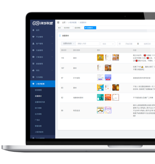 系统支持发圈素材,让更多的用户了解平台的福利,增强用户粘性